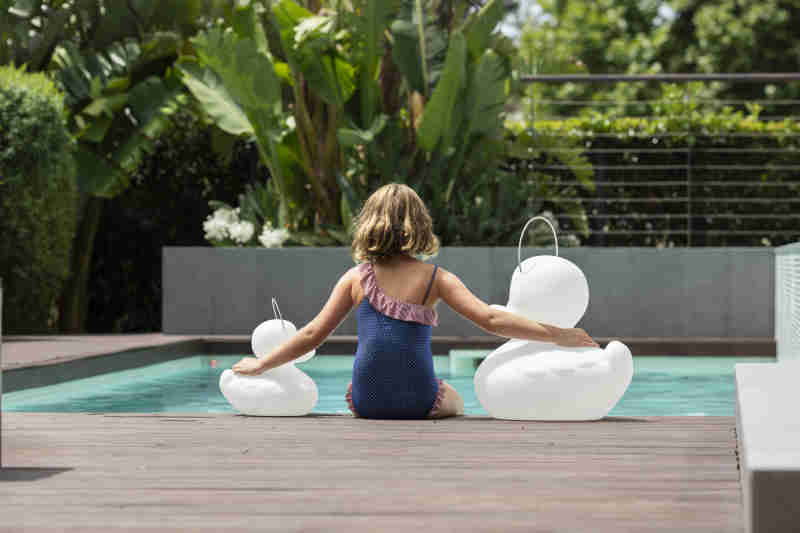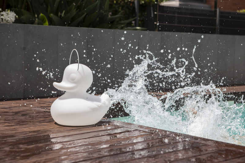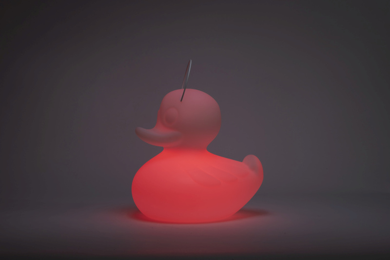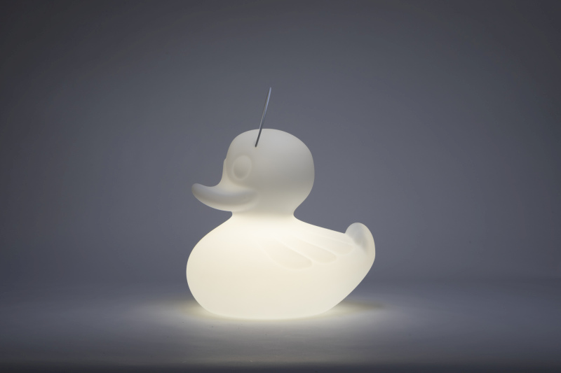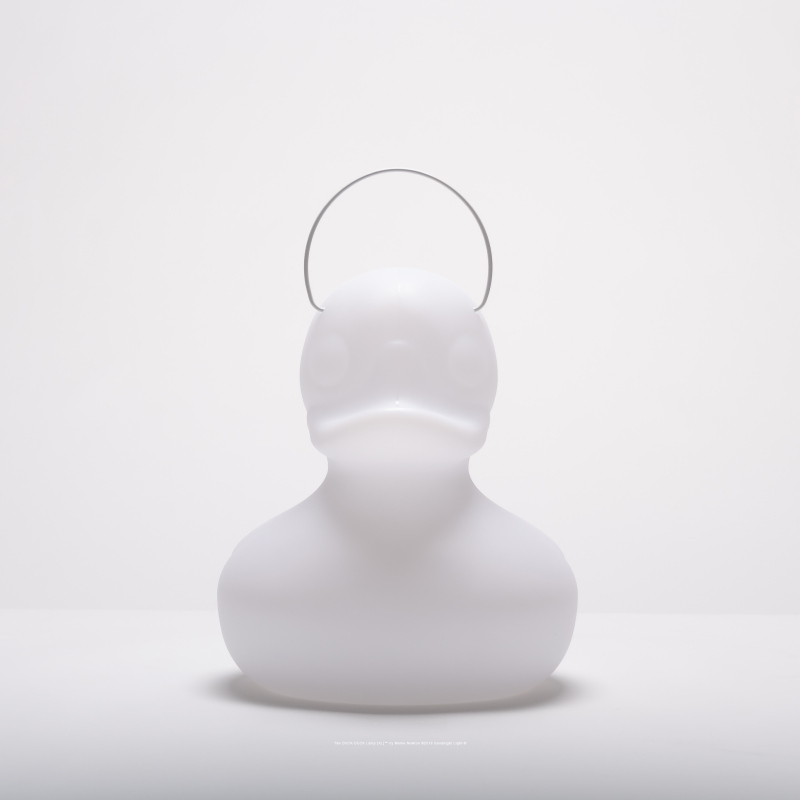 DUCK DUCK White. Das original aus der Serie von Goodnight Light ist ein echter Klassiker. Mit seiner einmaligen witzigen Form begeistert diese Lampe nicht nur die Kindern sondern ebenso Erwachsene. Ganz nach dem Motto: "Wie es sich für eine richtige Ente gehört", ist die DUCK-DUCK natürlich wasserfest und schwimmfähig. Du kannst der Ente also überall ein neues zuhause geben, sie fühlt sich drinnen genau so wohl wie in Deinem Garten. Die bruchfeste Designleuchte aus witterungsbeständigem PE Kunststoff kann mit dem stabilen und abnehmbaren Metallbügel ganz leicht von A nach B transportiert werden.