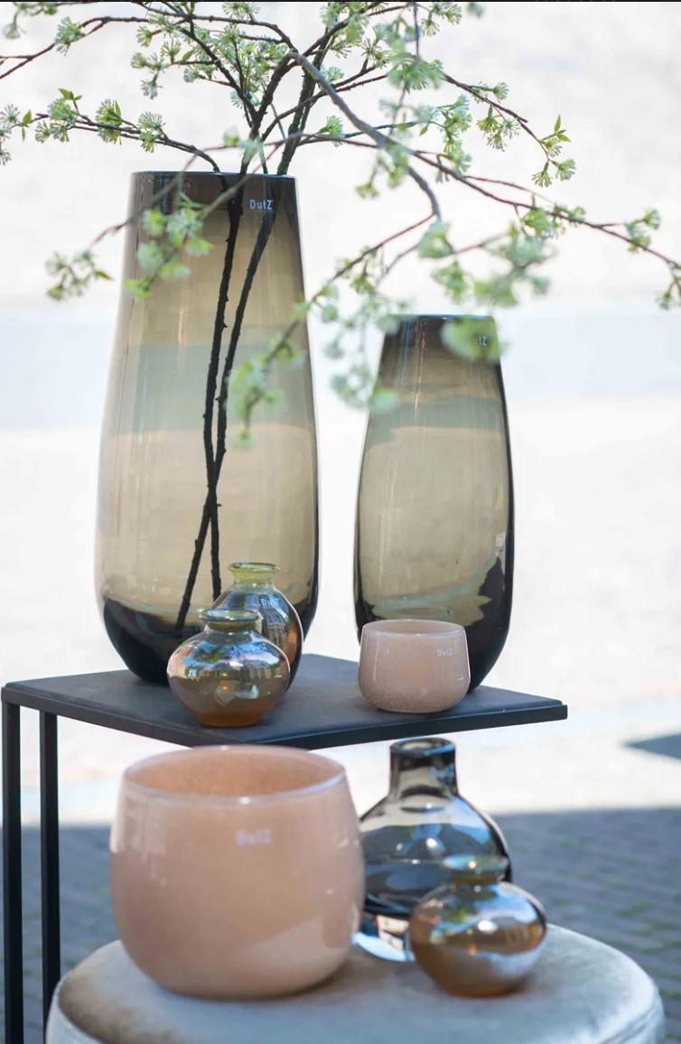 DutZ Vase Robert Smoke.Die Vasen der "Robert"-Kollektion aus der DutZ Collection zeichnen sich durch ihre herausragende Qualität und die Verwendung der Mundgeblasen-Technik aus. Sie sind perfekt geeignet, um wunderschöne Blumen zu präsentieren, insbesondere solche mit kräftigen Stielen. Diese Vasen sind ideal für Fensterbänke, Beistelltische, Küchentische, Wohnzimmertische, Couchtische, Badezimmer, Schlafzimmer und Küchen :-). Dank ihrer verschiedenen Größen lassen sie sich vielseitig in der Raumgestaltung einsetzen.