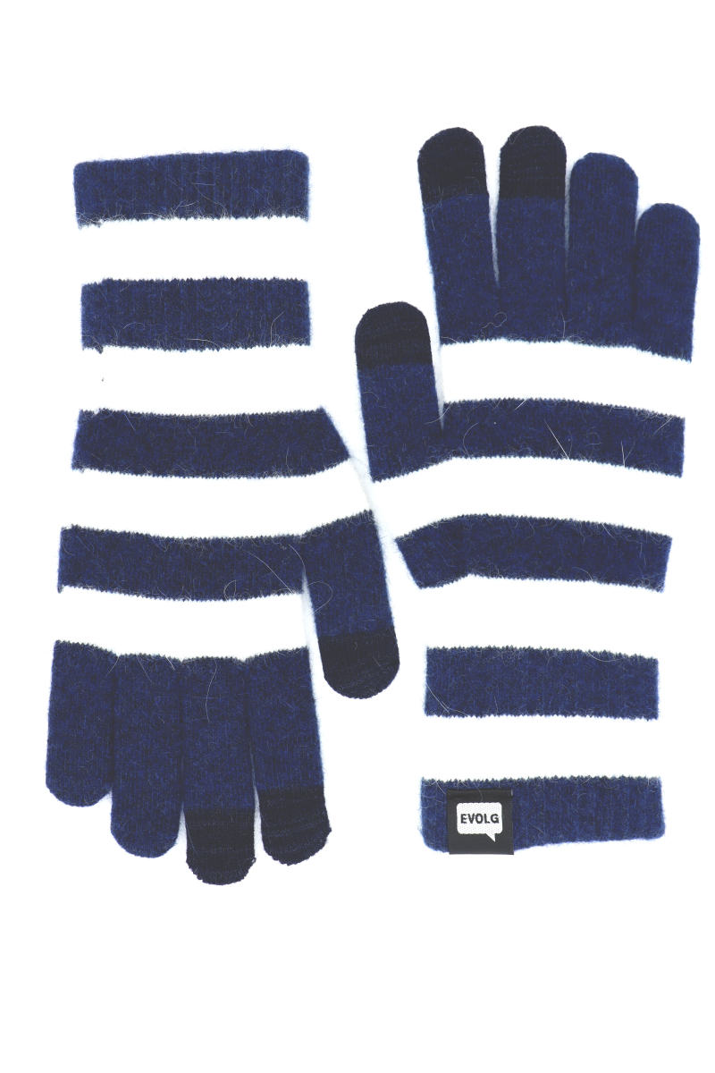 Evolg Handschuhe White Deep Blue. Marsh, der einzigartige Streifenkollektion, ist die ideale Entscheidung für Menschen, die stilvolle Mode und erstklassige Materialien zu schätzen wissen. Diese Handschuhe werden aus einer hochwertigen Mischung aus Angora-Wolle hergestellt und verleihen dir einen zarten und eleganten Touch, der puren Luxus verkörpert. Die Verwendung dieses edlen Garns in Verbindung mit den langen Strickrippen garantiert, dass du selbst an den eisigsten Wintertagen warm bleibst.