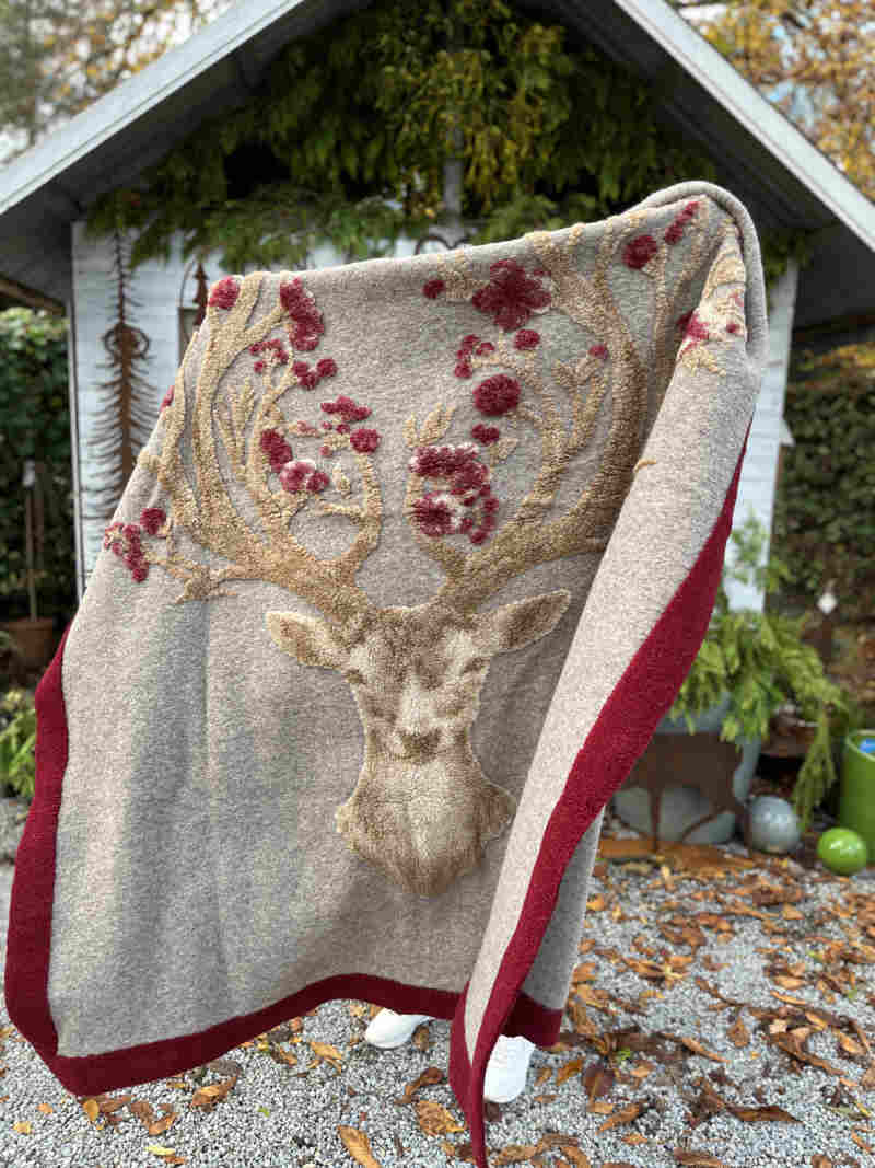 Startseite » Geschenkefinder » Geschenke für Ihn » Geschenke für Ihn 199€ » Frati HomeTextiles Happy Deer Decke Bordeaux