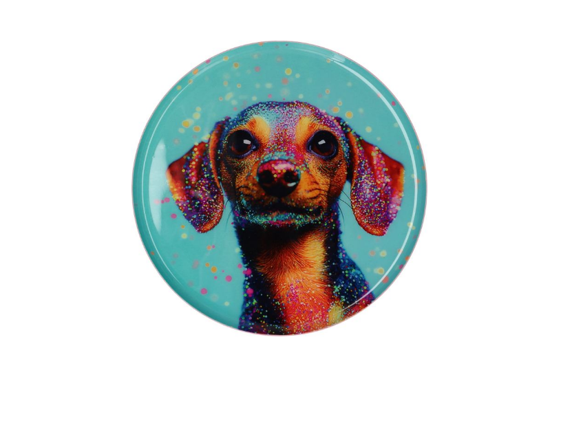 Das Gift Company Love Trays Dekotablett S Glitzer Dackel verbindet humorvolles Design mit stilvoller Funktionalität. Der charmante Dackel mit funkelnden Glitzer-Details macht dieses runde Tablett zu einem echten Blickfang und sorgt für gute Laune im Alltag.