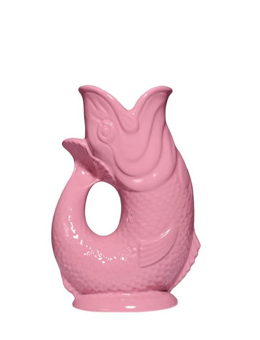 Gluggle Jug Wasserkrug Pink M. Verwende dieses einzigartige Gefäß entweder als Wasserbehälter oder elegante Tischdekoration, um deinem Zuhause eine außergewöhnliche Atmosphäre zu verleihen. Die bezaubernden Farben der Fischkaraffe strahlen Ruhe und eine tiefe Verbundenheit mit der Natur aus. Ihre unverwechselbare Form erzeugt beim Ausgießen das charakteristische "Gluck"-Geräusch, das diesen Krug zu einem Highlight auf jedem schön gedeckten Tisch macht. Ob als stilvolle Vase oder funktionaler Wasserkrug - der nagelneue Gluggle Jug mit seiner fabelhaften Farbpalette lässt sich problemlos mit zahlreichen anderen Einrichtungsgegenständen kombinieren und wird so zur perfekten Dekoration für dein Zuhause. Lasse dich von diesem außergewöhnlichen Lifestyle-Accessoire inspirieren und verleihe deinem Zuhause einen Hauch von Eleganz mit dem authentischen Gluggle Jug Wasserkrug aus England.