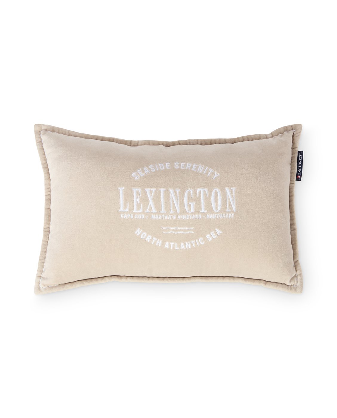Lexington Beige Logo Velvet Kissenhülle – Edler Bio-Baumwollvelours mit Logo