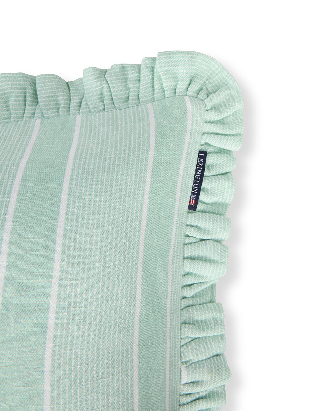 Lexington Striped Linen Cotton Frill Kissenhülle – Natürlicher Look mit feiner Rüsche