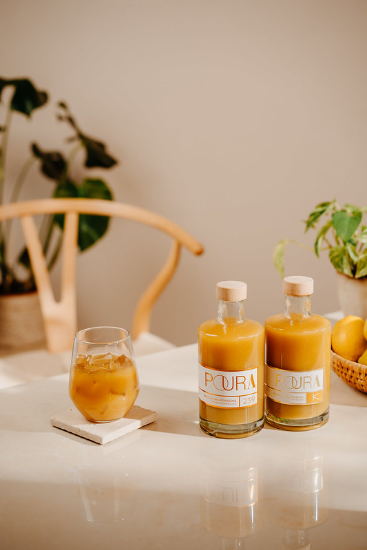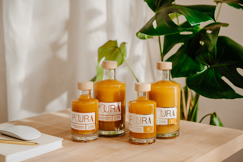 POURA ist eine hochwertige Bio-Kurkumaessenz mit einem Anteil von 35 % reinem Kurkuma. Durch die sorgfältige Verfeinerung mit Ingwer, Maca, Wacholder, Acerola, Zitrone und Banane entsteht eine natürliche Essenz, die als Geschmacksträger dient. Ähnlich wie Alkohol, jedoch mit einem erfrischenden Fokus auf Gesundheit. Diese Essenz bietet eine aufregende Möglichkeit, Drinks jeder Art zu verbessern, und lädt dazu ein, zu mixen und zu experimentieren, sei es für Cocktails oder Mocktails. Sie kann problemlos mit Sprudelwasser gemischt werden und bietet auch pur als Shot genossen einen besonderen Kick und großartigen Geschmack.