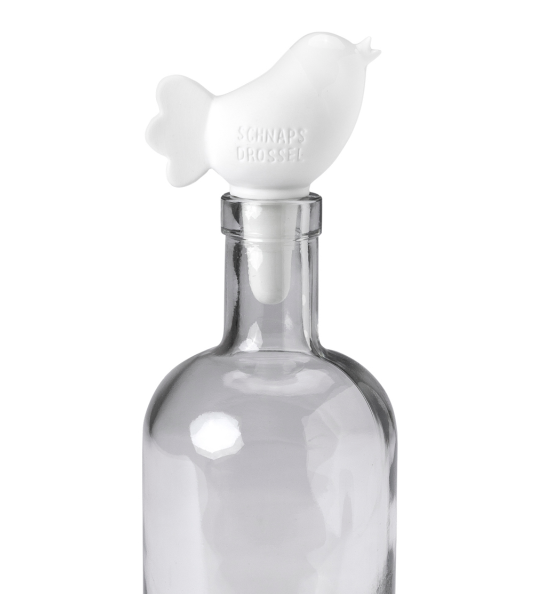 Räder Design Flaschenverschluss „Schnapsdrossel“ – Weißer Porzellanverschluss mit Humor
