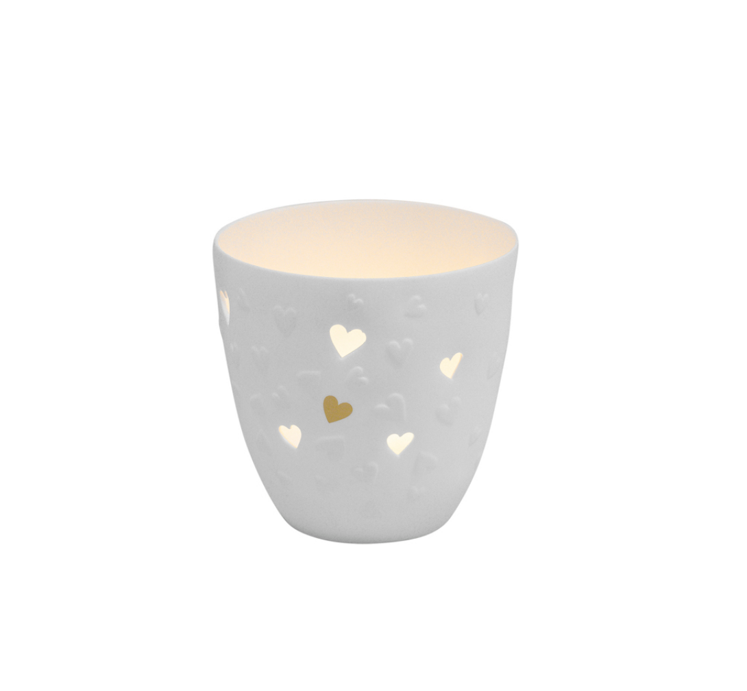 Gefertigt aus hochwertigem Material und mit zarten Goldakzenten veredelt, entfaltet das Poesielicht mit einem Teelicht oder LED-Licht im Inneren einen sanften, stimmungsvollen Schein. Das Licht reflektiert die goldenen Herzen auf elegante Weise und sorgt für eine ruhige, behagliche Atmosphäre.
