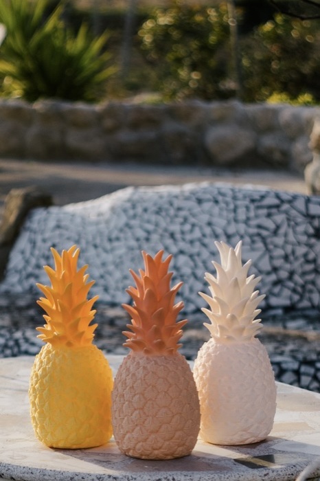 Die Pinacolada lamp wird aus bruchfestem Vinyl in einer kleinen Manufaktur in Spanien hergestellt . Durch das tolle Design und er einmalig schönen Oberflächenstruktur kommt die Lampe einer echten Ananas sehr nah.