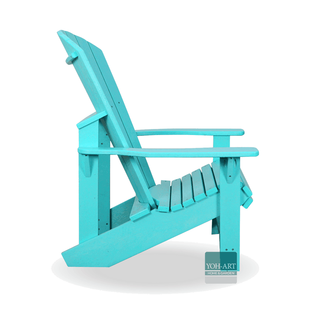 Der Adirondack Chair in Türkis, wow, was für eine Farbe. Eignet sich besonders in Verbindung mit einem Adiriondack Chair in Pink, was für eine Kombination. Dieser Muskoka Chair wie er ja nach Land auch genannt wird, ist super bequem und super pflegeleicht. Kein lästiges jährliches Aufarbeiten des Gartenmöbel, einfach zu jeder Zeit relaxen, ob im Sommer Herbst oder Winter. Er wird sorgfältig aus bis zu 100% recyceltem Kunststoff in Kanada hergestellt und fühlt jeden Tag im Garten wohl. Dieser Kunststoff Adirondack Chair ist sehr robust und außerdem extrem witterungsbeständig. Durch die vielen Farbmöglichkeiten macht das Kombinieren noch mehr Spaß.