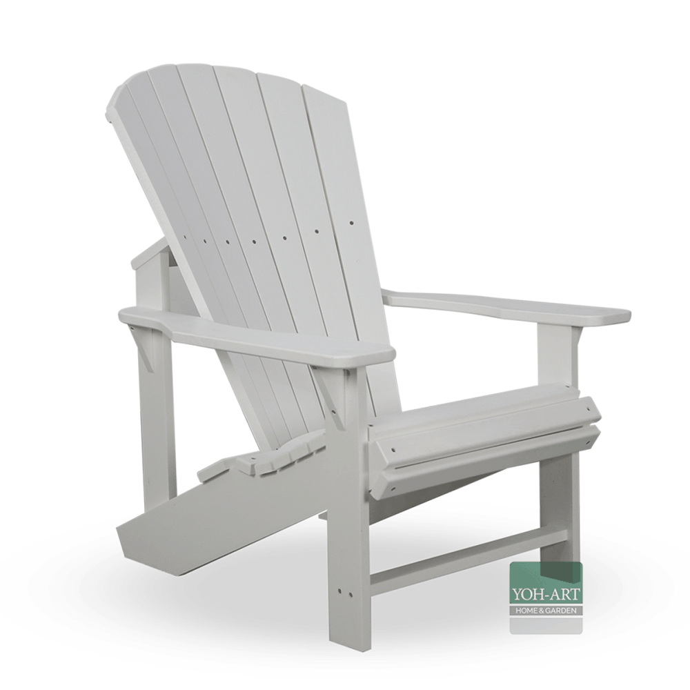 Dieser Adirondack Chair aus Kunststoff in weiss überzeugt in jeder Hinsicht. Insbesondere ist dieser Adirondack Chair sehr bequem, ergonomisch und genial pflegeleicht. Er ist aus recyceltem Kunststoff in Kanada hergestellt und fühlt das ganze Jahr in Deinem Garten wohl da er sehr robust und besonders witterungsbeständig ist. Mit dieser Farbenvielfalt kannst Du Dir Deinen eigenen Regenbogen in den Garten holen.