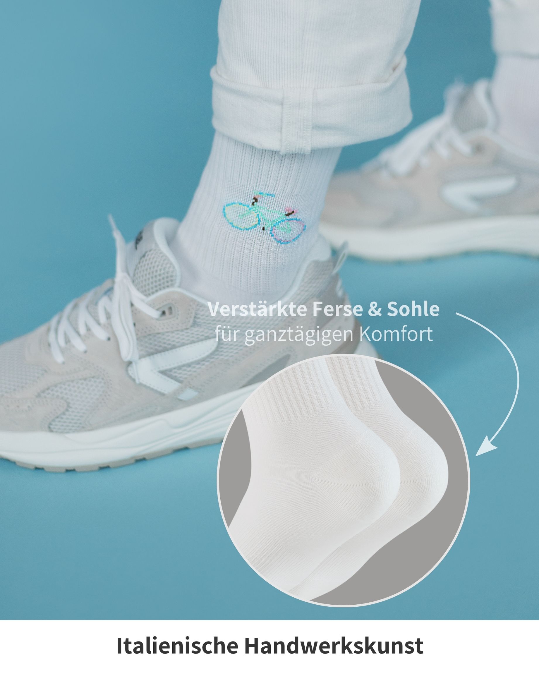 Wähle ooley Socken Icon Bike, wenn du langlebige, stilvolle und nachhaltige Socken suchst, die in Italien mit höchster Sorgfalt gefertigt werden. Gönn dir jetzt das Upgrade für deine Füße und erlebe Socken, die mehr können als nur gut auszusehen.