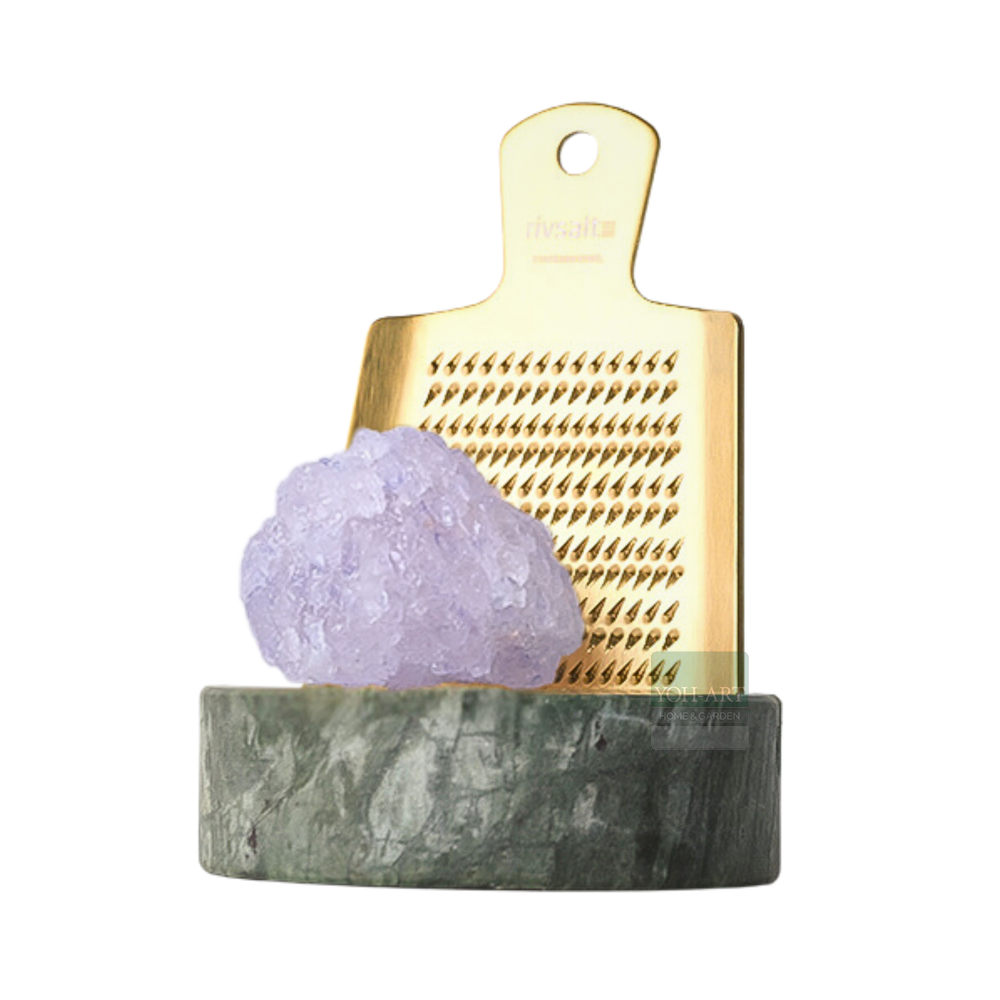 Entdecke die Rivsalt Salzreibe Marmor Grün – eine luxuriöse Bereicherung für Deine Koch- und Esserlebnisse. Diese hochwertige Salzreibe kombiniert die Funktionalität des beliebten Rivsalt-Designs mit exklusiven Materialien und edlem Finish. Der goldbeschichtete Edelstahlreibe kombiniert mit einem grünen Marmorsockel bringt Eleganz in Deine Küche und begeistert sowohl Hobbyköche als auch Feinschmecker. Begleitet wird das Set von einem einzigartigen persischen Blausalz, das nicht nur geschmacklich, sondern auch optisch ein Highlight ist.
