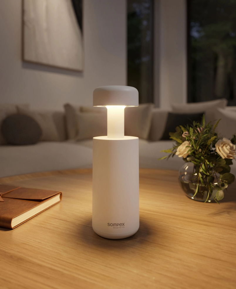 Sompex LUBAO – Weiße Akku-Tischleuchte mit sanftem Touch-Lichterlebnis
