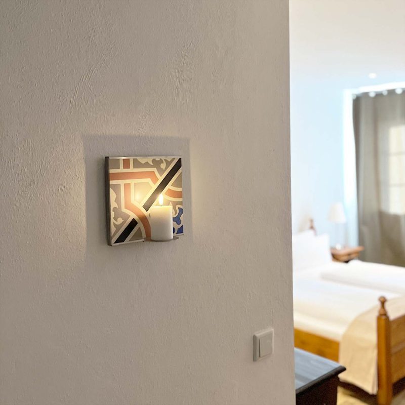 Ob Wachskerze oder LED-Kerze, mit dem tileo Wanddekorationskonzept lassen sich gemütliche Abende mit einem perfekten Blickfang erleben. LED-Kerzen können einfach auf dem Kerzenhalter genutzt werden da diese eine flache Unterseite haben. Aber auch für echten Wachskerzen gibt es in der tileo Kerzenhalterung eine einfache Lösung. Ein passender mitgelieferter Dorn ( im Rahmen integriert ) wird in die Kerzenplattform von unten eingesteckt und dann eingedreht und verriegelt. So eingesetzt kann eine Wachskerze auf den Dorn gesteckt werden um einen festen und sicheren Stand zu gewährleisten. Dies funktioniert mit allen handelsüblichen Wachskerzen in der richtigen Größe. Bestücke Deine tileo Wandkerzenhalterung mit Wachskerzen oder LED-Kerzen und lasse nicht nur die Augen, sondern auch das Herz erstrahlen. Einfachheit und Perfektion gepaart in einer wirkungsvollen und durchdachten Halterung für Deine Wanddekoration mit tileo.