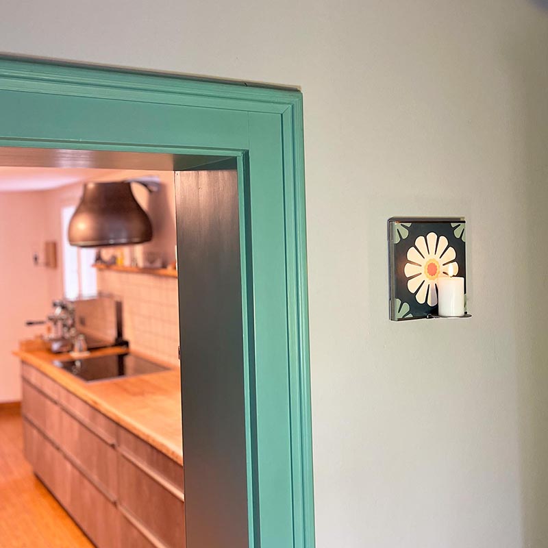 Ebenso lässt sich der tileo Kerzenhalter mit dem Wandhalter kombinieren, einfach nach der montage des Wandhalters seitlich einschieben, fertig. Damit gibt es bei Deiner Gestaltungsfreiheit keine Grenzen.