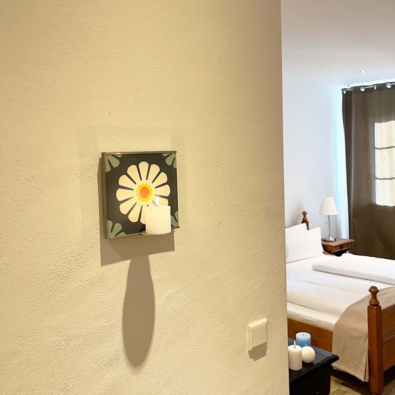 Ob Wachskerze oder LED-Kerze, mit dem tileo Wanddekorationskonzept lassen sich gemütliche Abende mit einem perfekten Blickfang erleben. LED-Kerzen können einfach auf dem Kerzenhalter genutzt werden da diese eine flache Unterseite haben. Aber auch für echten Wachskerzen gibt es in der tileo Kerzenhalterung eine einfache Lösung. Ein passender mitgelieferter Dorn ( im Rahmen integriert ) wird in die Kerzenplattform von unten eingesteckt und dann eingedreht und verriegelt. So eingesetzt kann eine Wachskerze auf den Dorn gesteckt werden um einen festen und sicheren Stand zu gewährleisten. Dies funktioniert mit allen handelsüblichen Wachskerzen in der richtigen Größe. Bestücke Deine tileo Wandkerzenhalterung mit Wachskerzen oder LED-Kerzen und lasse nicht nur die Augen, sondern auch das Herz erstrahlen. Einfachheit und Perfektion gepaart in einer wirkungsvollen und durchdachten Halterung für Deine Wanddekoration mit tileo.